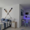 La casa tiene en total 4 estudios – apartamentos con bañera de hidromasaje y cocina incluida. Las dos habitaciones situadas en la planta baja son ideales para parejas donde pueden disfrutar del sol en la amplia terraza con la que cuentan. Estas dos habitaciones también las recomendamos para aquellos que vienen acompañados por su mascota. Las dos habitaciones de la planta superior son un poco más amplias que las anteriores, por lo que tienen un sofá-cama para que duerman los más pequeños. Éstas, además, disponen de balcón orientado al sur y con vistas al portillo de La Sía.